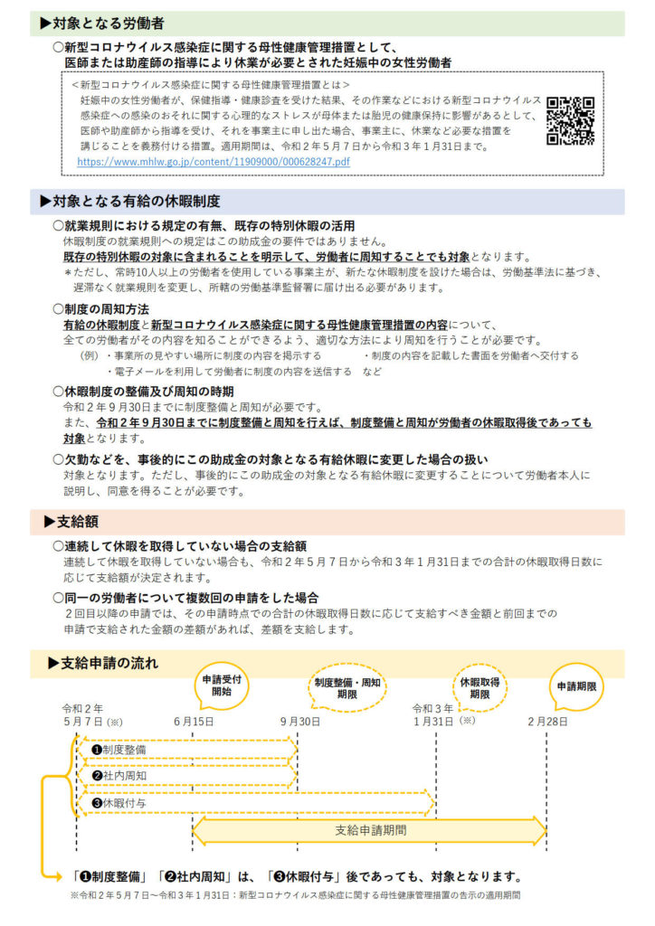 『新型コロナウイルス感染症に関する母性健康管理措置による休暇取得支援助成金』