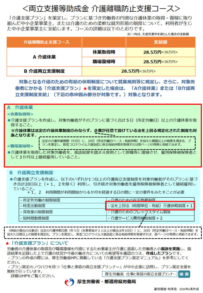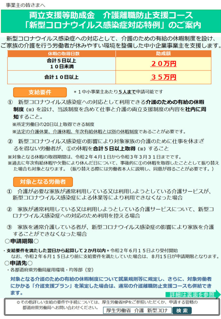両立支援等助成金(介護離職防止支援コース)に「新型コロナウイルス感染症対応特例」を創設