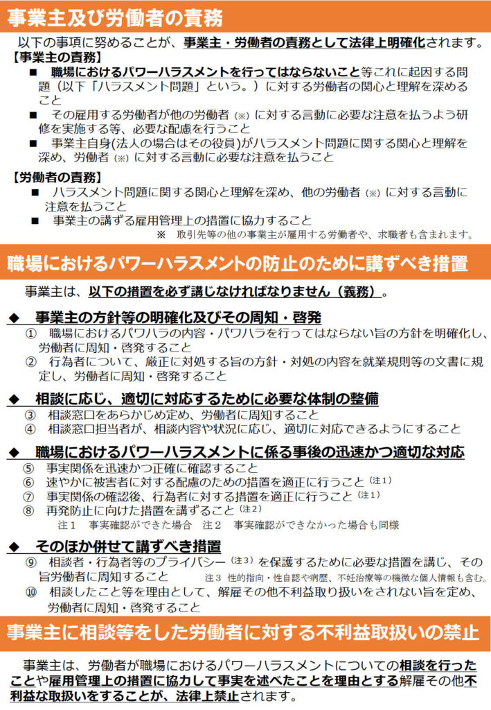 職場におけるパワーハラスメントの防止のために講ずべき措置