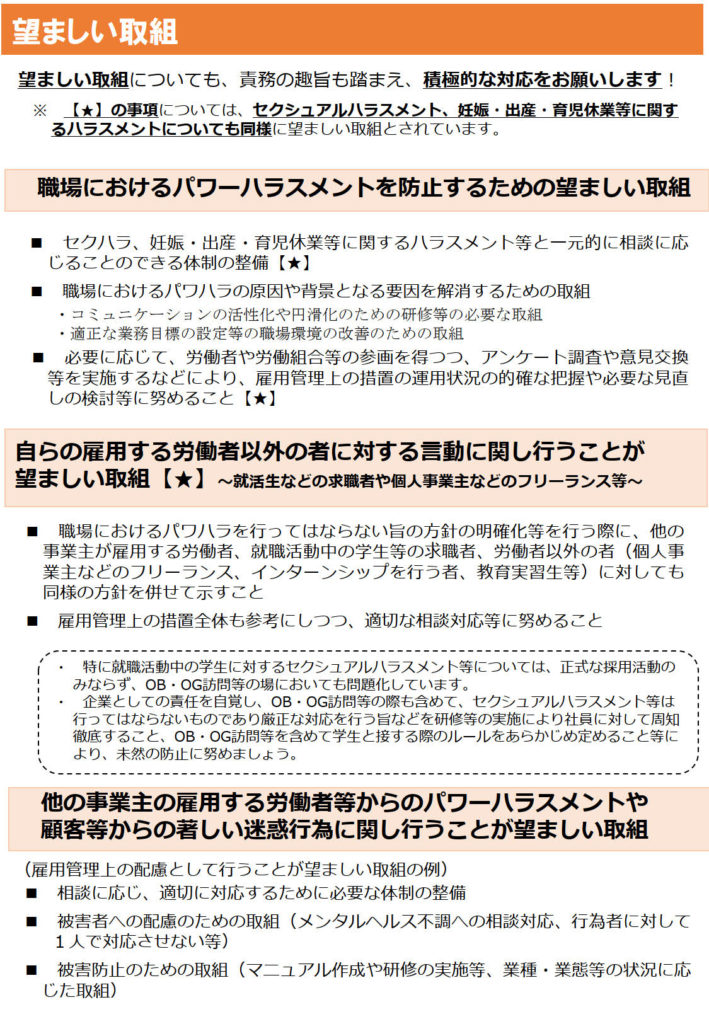 ※ 【★】の事項については、セクシュアルハラスメント、妊娠・出産・育児休業等に関するハラスメントについても同様に望ましい取組とされています。